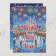 Send a magical wish with this artistic holiday card depicting a snowy town celebration under a sky of colorful fireworks. A nostalgic and heartwarming choice for the New Year