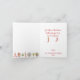 La caprichosa y divertida tarjeta de Navidad tiene las patas de una jirafa con luces de Navidad de colores envueltas alrededor. Dice Feliz Navidad en la parte delantera. En la parte inferior izquierda del interior de la tarjeta hay una fila con un coche rojo con regalos apilados encima, casas y árboles de Navidad. A la derecha dice "Conecta esas luces de Navidad y celebra!". Dos calcetines tejidos a mano cuelgan de las letras inferiores. Personalice en la parte inferior con el texto de cierre, el nombre de la familia y el año. El reverso de la tarjeta tiene otro calcetín lleno de vegetación navideña.