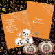 Una tarjeta de Halloween oscura y espeluznante personalizada para niños/amigos/compañeros/cualquiera. Se ve bien si se coloca en la mesa o como colgante para decorar la pared. La ilustración tiene una pila de esqueletos acechando en la noche de Halloween bajo una telaraña con fondo naranja. La cita/Título se puede alterar fácilmente con la elección de texto y estilo de fuente. En el reverso hay un diseño a juego. Si te gusta mi arte, encuentra más productos como estos en mi tienda 'halloweengallery'.