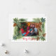 Feliz Navidad - Tarjeta de Navidad plana 1 foto 5x7. Borde festivo de hoja perenne con piñas y abetos. Edite la foto y el nombre de la familia. Parte posterior... "Pensamientos cálidos y mejores deseos para una maravillosa Navidad y un Feliz Año Nuevo."