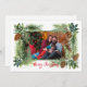 Feliz Navidad - 1 foto 5x7 Tarjeta de Navidad plana. Borde festivo de hoja perenne con piñas y abetos. Edite la foto y el nombre de la familia. Espalda... "Pensamientos cálidos y mejores deseos para una maravillosa Navidad y un Feliz Año Nuevo."