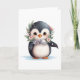 Tarjeta Festiva Pingüino Lindo Con Bufanda y Acebo EN BLANCO