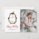 Felices fiestas! Envíe alegría festiva esta temporada navideña con esta tarjeta de personalizable fotográfica. Presenta un guión caprichoso y un ilustracion de un pingüino lindo con luces Navidades. Personalice agregando sus detalles. Esta tarjeta de vacaciones de pingüino personalizado está disponible en otros materiales.