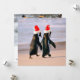 Tarjeta Festiva Pingüinos con gorros de Santa en la playa