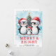 Tarjeta Festiva Pingüinos cortos Navidades rojos moros y azules br