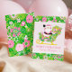 Tarjeta Festiva Pink and Green Preppy Palm Beach Santa