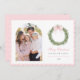 Add a charming touch to your holiday season with these personalized holiday cards featuring a delightful watercolor coquette wreath design and a beautiful arch photo template. The festive green Christmas wreath, adorned with a beautiful pink bow will bring a playful yet elegant feel to your holiday season.