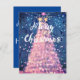 Pink Christmas Tree with Sparkling lights with navy blue background.