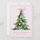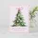 Tarjeta Festiva Pink Coquette Ornate Rococo Bow Christmas tree