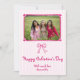 Pink hand drawn scribble bow Galentine's Day photo Holiday Card. This Galentine's Day photo card is designed to capture the spirit of friendship with its unique retro French Parisian aesthetic. The hand-drawn pink scribble bow and magenta frame, complete with sweet hearts and a delicate bow, add a touch of whimsical charm. A handwritten font and pink and white striped background create a romantic backdrop for showcasing a cherished photo of best friends. The back of the card offers a space for a heartfelt, personalized message.