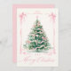 Esta tarjeta de navidad rosada es una manera encantadora y elegante de enviar los deseos festivos con un toque de estilo. Con un hermoso y detallado árbol navideño de acuarela adornado con arcos rosados y letras de guión, combina el espíritu clásico de las vacaciones con un toque moderno y femenino. Perfecto para extender la alegría a la familia y amigos, este diseño único se destacará y se convertirá en un placer que valorarán.