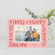 This festive holiday card features the words "merry everything and a happy always" in a frame around a single photo on the front with space for a second photo on the back. It also has space for your name as well as the year.