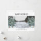 Celebre la temporada con esta serena tarjeta de vacaciones que presenta una escena invernal pacífica de pinos cubiertos de nieve que flanquean un lago congelado. El cielo gris apagado y el bosque escarchado crean una atmósfera tranquila y acogedora perfecta para enviar buenos deseos. La parte superior dice “Felices Fiestas” en letra serif clásica, mientras que la parte inferior incluye espacio para personalizar con el nombre de su familia. Una hermosa opción para los amantes de la naturaleza y aquellos que disfrutan de un ambiente invernal rústico y sereno.