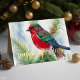 Tarjeta Festiva Pintura de pájaro rojo verde de invierno