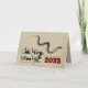 Pintura original de lavado de una serpiente por RB. Diseño en tarjeta de felicitación horizontal con papel hecho a mano tradicional bistre - hecho en Vietnam - (imagen impresa) como fondo (delante y dentro de la tarjeta) + escritura a mano vietnamita en negro + "Año de la Serpiente" y 2025. Tarjeta postal y pegatina de fiesta coincidente. Perfecta para un Año Nuevo vietnamita original y moderno de la Serpiente 2025.