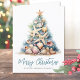 Entra en el espíritu de las vacaciones con esta tarjeta de Navidades plegados única que incluye un árbol navideño festivo hecho de conchas y estrellas de mar. Perfecto para enviar deseos de vacaciones en la playa, este diseño es ideal para cualquiera que viva en lugares tropicales como Florida, Hawái o Bahamas —o para los que simplemente aman la playa. El árbol, coronado por una estrella de mar, es una mezcla encantadora de tonos azules y verdes, que recuerdan a los corales submarinos. Se encuentra en una base de arena para un ambiente cálido y costero. El estilo rústico acuático añade un toque artístico, mientras que los tipos de letra y la tipografía de escritura sencillos aportan un ambiente informal pero elegante. El mensaje está impreso en el interior de la tarjeta, con mucho espacio para personalizar su saludo de vacaciones. Una forma divertida de añadir un poco de surf y arena a tus celebraciones de temporada. Disponible como una tarjeta impresa o una versión digital descargable que puede enviar por correo electrónico o imprimir localmente.