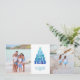 Saludos divertidos de temporada playera en un diseño tipográfico caprichoso en tonos de azules oceánicos con acentos de dólar de arena y peces y dos fotos. Olas de color océano en el lado reverso. CONSEJO DE FOTO: Para obtener mejores resultados, elija fotos con el sujeto en el medio y/o pré-corte a una forma similar a la mostrada antes de subir. Por favor, contacte al diseñador a través del botón de MENSAJE o por correo electrónico a sillyseasshop@gmail.com si necesita ayuda con el diseño, productos coincidentes o una solicitud de diseño especial.
