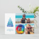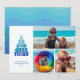 Saludos divertidos de temporada playera en una tipografía caprichosa en tonos de azules oceánicos con acentos de dólar de arena y peces y 3 fotos. Ondas de color océano en el lado reverso. CONSEJO DE FOTO: Para obtener mejores resultados, elija fotos con el sujeto en el medio y/o pré-corte a una forma similar a la mostrada antes de subir. Por favor, contacte al diseñador a través del botón de MENSAJE o por correo electrónico a sillyseasshop@gmail.com si necesita ayuda con el diseño, productos coincidentes o una solicitud de diseño especial.