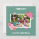 A soft, playful, cuddly knitted bunny in pastel colors with tiny yarn eggs, perfect for Easter greeting cards and spring holiday decor. The design is charming and plush, with a handmade feel and bright, warm, friendly appeal.