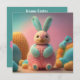 A soft, playful, cuddly knitted bunny in pastel colors with tiny yarn eggs, perfect for Easter greeting cards and spring holiday decor. The design is charming and plush, with a handmade feel and bright, warm, friendly appeal.