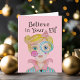Este lindo diseño de Navidades fue creado usando mi elfo mediático mezclado con la mano, con detalles peculiares y un fondo verde con copos de nieve para un ambiente único y caprichoso. La suave paleta de colores retro de rosa, verde y azul es perfecta para la temporada navideña moderna y el divertido juego de palabras "Believe in Your Elf" le añade un toque de humor. Arte original de Malissa Melrose.
