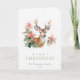 Tarjeta Festiva Poinsettia Navideña de Reno de Acuarela Follaje de