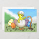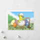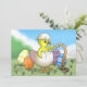El pollo recién eclosionado desea a la lombriz una feliz Pascua.