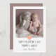 Una linda tarjeta de foto para bebé de San Valentín para mamá y papá, con un bebé y un conejo relleno. Mejor mamá y papá en la parte de atrás de la tarjeta. Añade la foto de tu bebé. Del bebé en ella o en su primer El día de San Valentín. Para los padres nuevos.