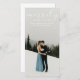 Tarjetas de Navidad de primera boda modernas y encantadoras con FOTO. Feliz para siempre, felices fiestas del nuevo Sr. y Sra. Personalice añadiendo su nombre. Letras blancas de topografía de escritura.