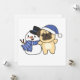 Tarjeta Festiva Pug Con Snowman En Invierno Para Navidades