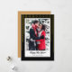 Esta tarjeta de felicitación de fotos de Año Nuevo presenta un diseño contemporáneo y elegante con puntos verticales dorados a diferentes longitudes sobre un fondo negro. Personalizar con tu foto favorita.