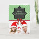 Elegantes tarjetas Navidades personalizadas con un patrón de puntos polka verde adornado con arco rojo y estrella negra. Personalizar con su propia fotografía y texto. Haga clic en "personalizar" si necesita reubicar su foto. Muestra texto en el interior para cambiar su propio saludo.