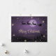 Bonitas nevadas de Navidades morados con escenas de invierno con Santa Claus y renos, copos de nieve, estrellas y nieve en la parte delantera y copos de nieve y estrellas en la parte trasera. Personaliza fácilmente esta tarjeta de Navidades morados con tu nombre y texto familiar.