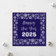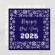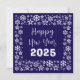Square wish card Happy New Year written in English in white font with a lot of golden stars on a Purple background - editable text and background
