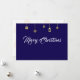 Greeting wish card Merry Christmas written in English in mauve font with golden christmas symbols on a purple background - editable text and background