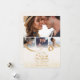 Celebra tu primera Navidad como familia con este elegante diseño de collage de 4 fotos. Con un suave fondo de marfil, un acento de cinta purpurina dorado y un gráfico de trineos de reno festivo, esta tarjeta le da un toque cálido y lujoso a su mensaje de vacaciones. Sube tus fotos de pareja o familia favoritas y personaliza el texto para un mantenimiento único.