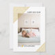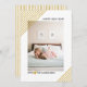 Purpurina de oro estampó la tarjeta fotográfica contemporánea de Año Nuevo. Un patrón rayado de rayas diagonales cubre las esquinas superior izquierda e inferior derecha acentuadas con un corazón dorado. Fotografía © Storytree Studios, Stanford, CA