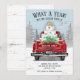 Trae algo de alegría y risas a tu familia y amigos con esta divertida tarjeta rústica de vacaciones que incluye un camión rojo vintage con papel higiénico decorado con holly y luces en un fondo de madera templada. Personaliza con tu apellido y año. Diseñado por los artistas Tim Coffey y Susan Coffey.