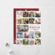 Tarjeta de felicitación moderna y única para las fiestas con una plantilla de collage de fotos fácil de subir para 17 imágenes con leyendas en la parte frontal y el año con tu título personalizado y saludo (el ejemplo muestra ¡QUÉ AÑO! y FELIZ NAVIDAD) en tipografía moderna de letra a mano con un color rojo carmesí personalizable que puedes cambiar fácilmente para coordinar con tus fotos. La parte trasera presenta otra foto, tu monograma y un área de texto para incluir los aspectos más destacados del año de tu familia, resumen o carta de Navidad; elimina la foto para dejar más espacio para texto si lo deseas. ASISTENCIA: Para obtener ayuda con la modificación o personalización del diseño, cambio de color, cambio de tamaño o transferencia del diseño a otro producto, contacta al diseñador ANTES DE REALIZAR EL PEDIDO a través de la pestaña de MENSAJE de chat de Zazzle a continuación o env