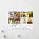 Utilice esta tarjeta de vacaciones para que sus amigos y familiares vean los eventos importantes que han ocurrido el año pasado. Hay ocho espacios para fotos donde puede incorporar eventos importantes como graduaciones, el primer día de clases, cumpleaños, nuevos bebés y más.