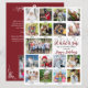 Tarjeta de felicitación navideña moderna y única de gran tamaño (en papel delgado de 6,5" x 8,75"; no cartulina) que incluye una plantilla de collage de fotos fácil de subir para 17 imágenes con leyendas en la parte frontal y el año con tu título personalizado y saludo (el ejemplo muestra ¡QUÉ AÑO! y FELICES FIESTAS) en tipografía de caligrafía moderna a mano en color rojo carmesí editable. La parte trasera cuenta con otra foto, tu monograma y espacio para agregar el resumen del año o los aspectos más destacados; puedes eliminar la foto para dejar más espacio para tu texto si lo deseas. ASISTENCIA: Para obtener ayuda con la modificación del diseño o personalización, cambio de color, cambio de tamaño o transferencia del diseño a otro producto, contacta al diseñador ANTES DE REALIZAR EL PEDIDO a través de la pestaña de MENSA
