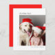 Una elegante tarjeta de felicitación plana con fotos de vacaciones con tipografía clásica "¡qué divertido!" en negro sobre un fondo blanco limpio y simple y un color rojo brillante al revés. La foto y el texto se pueden personalizar fácilmente para un toque personal. Un diseño de navidades sencillo, minimalista y contemporáneo que destaca en esta temporada de vacaciones. La imagen que se muestra es para fines de ilustracion y sólo se sustituye por la suya. La imagen de marcador de posición es de un hermoso perro labrador y una linda niña que usa gorras navidades.