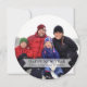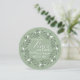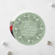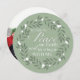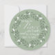 Una simple y estilizada corona de hojas con bayas blancas rodea palabras que hablan de la temporada y nuestras vidas: "Que haya paz en la tierra y que comience conmigo". La tipografía blanca está colocada sobre un fondo verde salvia moderno. El reverso de esta tarjeta redonda única está hecho para ser personalizado con su propia fotografía para llenar todo el lado. Un banner blanco pálido abarca la mitad inferior con suficiente espacio para dos líneas de texto personalizado. Simplemente personalícelo utilizando las plantillas fáciles proporcionadas. Perfecto para cualquier día festivo, felicitaciones de Año Nuevo o simplemente porque sí.