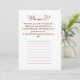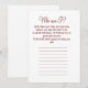 Tarjeta Festiva quién soy juego sencillo para baby shower de novia