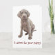 Un perrito precioso del weimaraner con los ojos azules y la frase "que quiero ser su perrito"