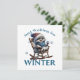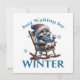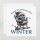 Celebre el espíritu acogedor de la temporada con esta encantadora carta de Navidades con un magnífico mapache sobre una mecedora, que se balancea suavemente mientras saborea una copa de vino tinto. La leyenda lúdica, "Esperando el invierno", agrega un toque de humor y calidez, perfecto para difundir alegría a amigos y familiares que disfrutan de las cosas más finas (y más coziosas) de la vida.