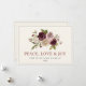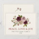 Esta elegante tarjeta de felicitación navideña "Paz, Amor y Alegría" presenta un ramo invernal minimalista y moderno en acuarela sobre un fondo neutro.