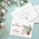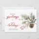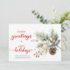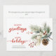 El diseño muestra ramas de piñas y bayas sencillas pero hermosas, con un saludo central en letra elegante.