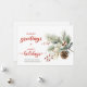 El diseño muestra ramas de piñas y bayas sencillas pero hermosas, con un saludo central en elegante letra cursiva.