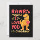 Tarjeta Festiva Rawr significa que te amo en San Valentín de dinos